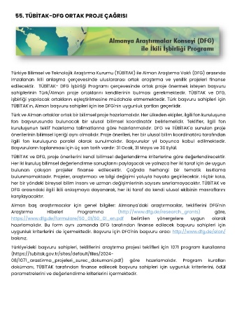 edilecektir. TÜBİTAK- DFG İşbirliği Programı çerçevesinde ortak proje önermek isteyen başvuru