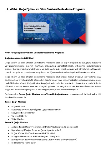1. 4004 - Doğa Eğitimi ve Bilim Okulları Destekleme Programı