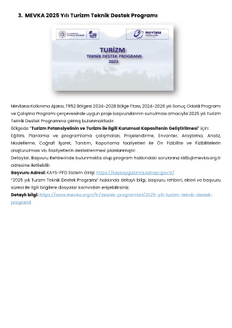3. MEVKA 2025 Yılı Turizm Teknik Destek Programı