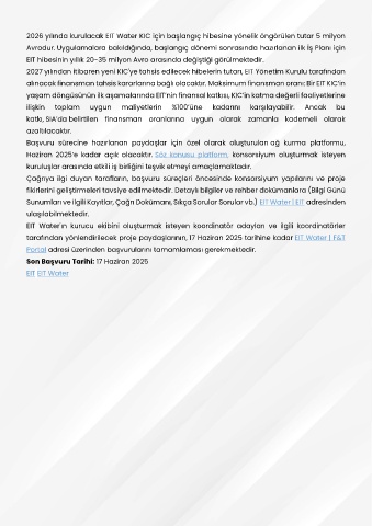 2026 yılında kurulacak EIT Water KIC için başlangıç hibesine yönelik öngörülen tutar 5 milyon