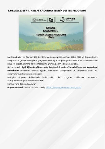3. MEVKA 2025 YILI KIRSAL KALKINMA TEKNİK DESTEK PROGRAMI